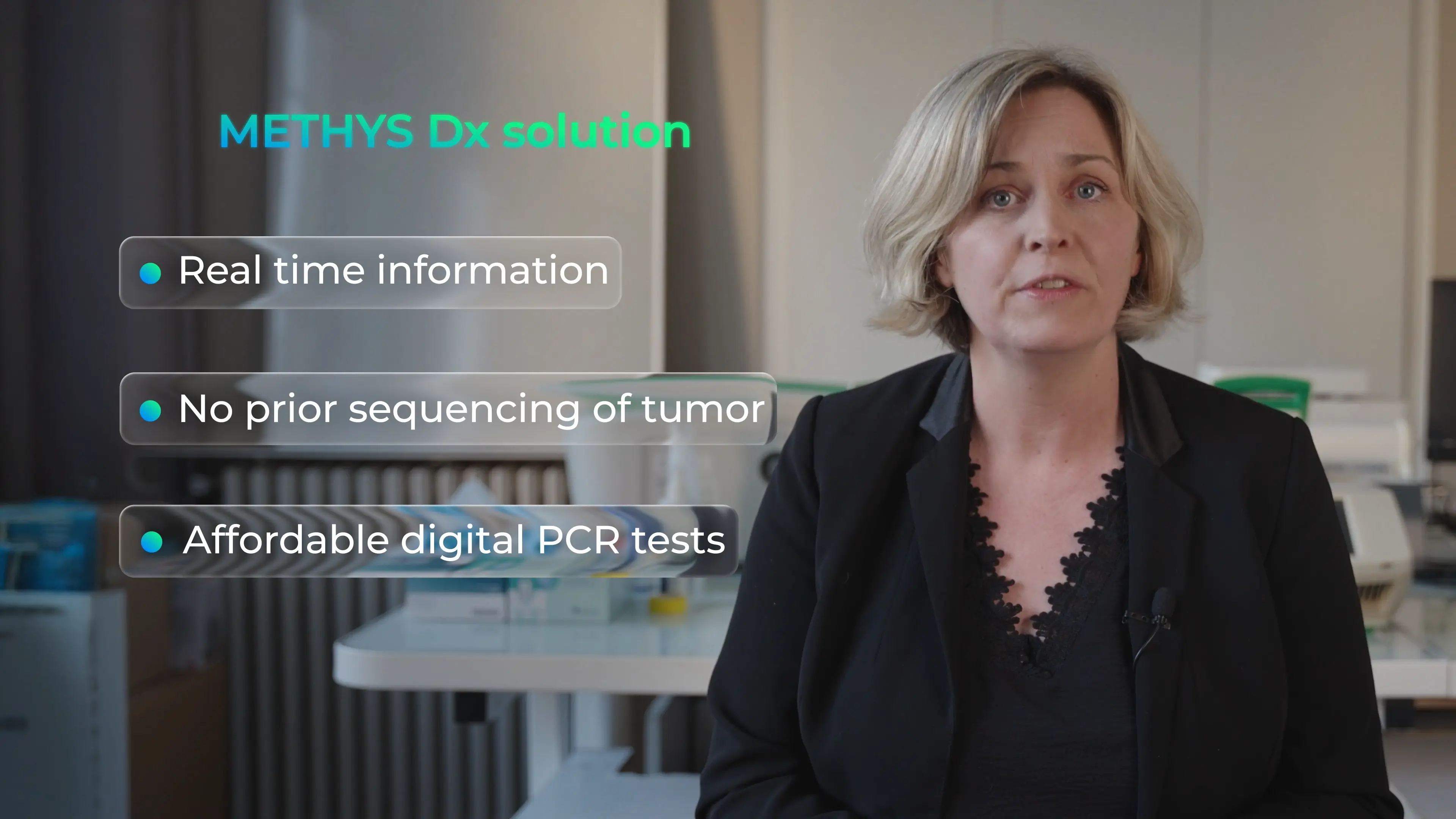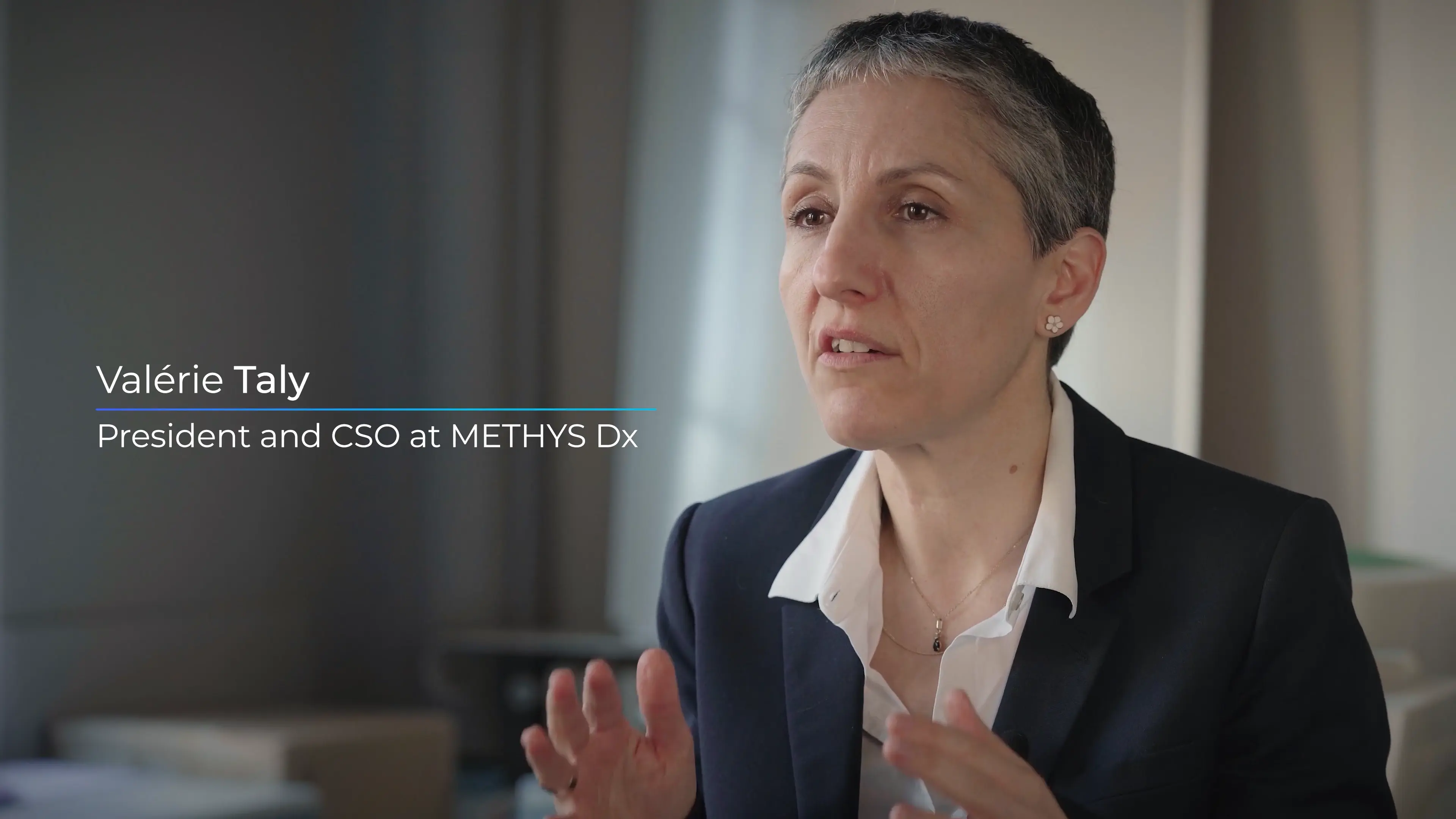 L'innovation de Methys Dx étant hautement technique, nous avons complété l'interview par des éléments de Motion Design 2D. Ces visuels permettent de matérialiser le processus de diagnostic et d'assurer une compréhension immédiate par des investisseurs non-scientifiques.